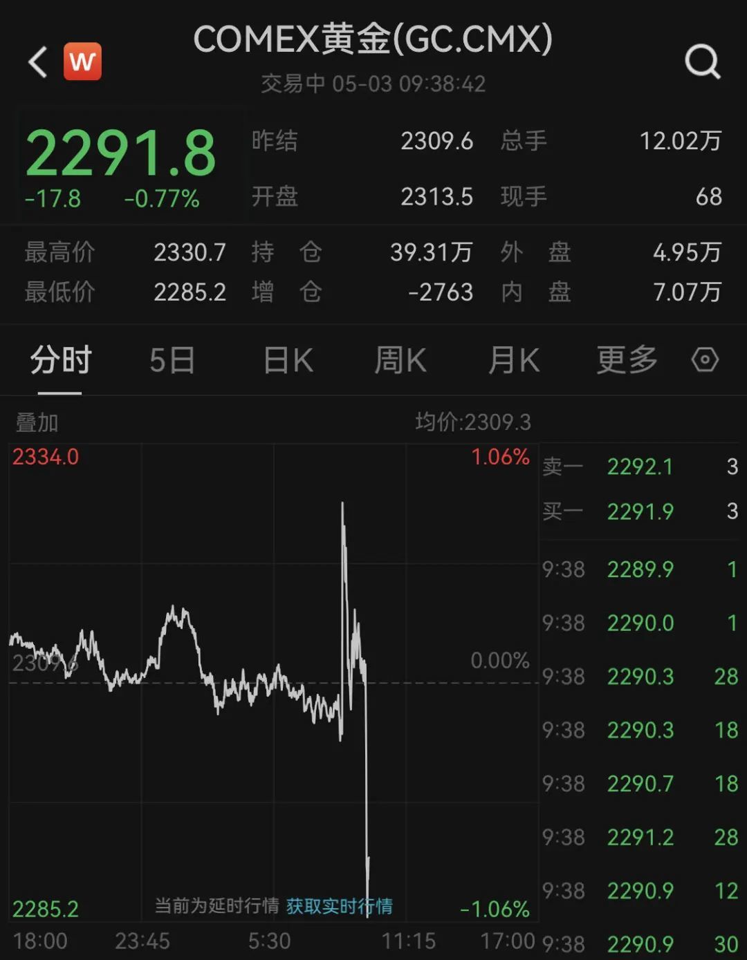 5月3日晚间,因美国非农数据公布,全球多数资产都在上涨。美股三大指数均高开,不过截至发稿又出现较大幅度回落。