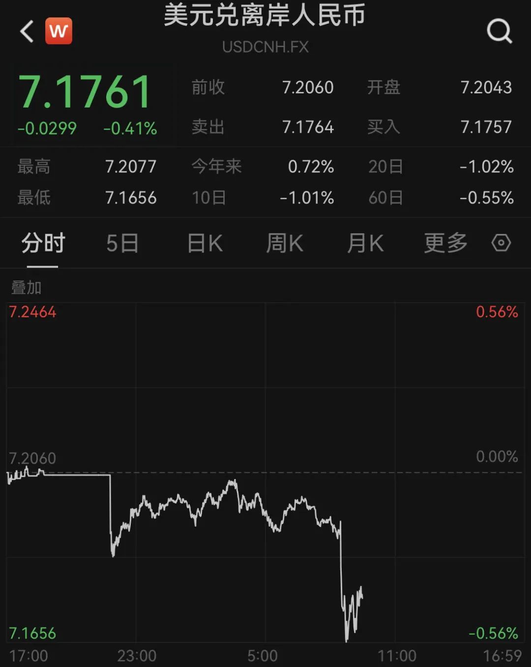 另外,美元指数也在下跌,离岸人民币兑美元则继续上涨。